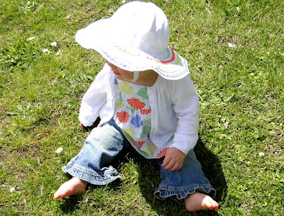 Changes everyday. Since turning seven months, Laine has tasted mango, blueberries, prunes, peaches, quinoa, green beans and even cinnamon (added to her morning oatmeal!) She's a confident sitter now, hops up on her knees and rocks back and forth, and will be crawling any day. Just yesterday she got from her tummy into a sitting position before I even knew what was happening. She's been busy playing with her tongue (and anyone else's who is willing to stick theirs out,) and can "click" it. On Father's Day she clicked her tongue, Jayson clicked back, and she clicked back to him! It went on for quite some time and I had to come sit near her to see that it wasn't just Jayson making the noise--it was so loud that I didn't believe it was her doing it!